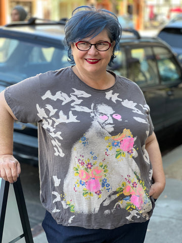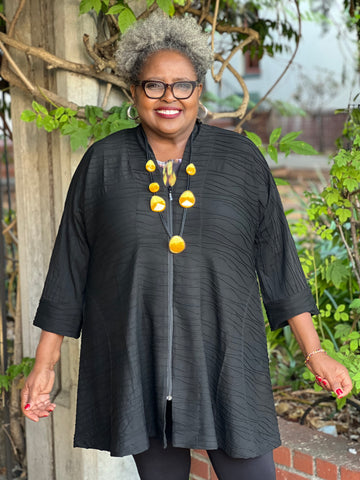 Jess and Jane Brushed Hacci Pleat Neck-Cobalt
