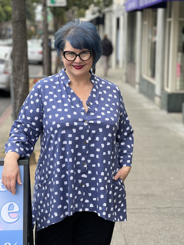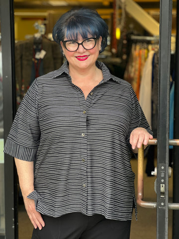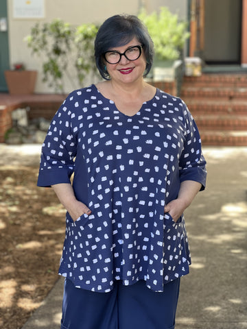 Flutter 3/4 Sleeve Sarah Dress-Navy/White Stripe