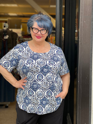 Mara Gibbucci One Size Blue Plaid Asymmetrical Button Down