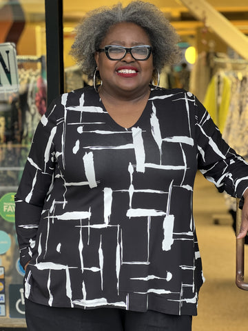 Niche Bella Blouse-B/W Swirl Poplin