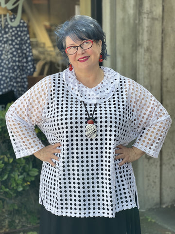 Sydney Project Knitted Holes Cowl Top-White