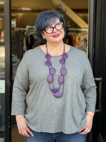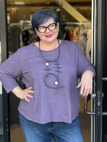 Kleen 3/4 Sleeve Round Neck Tee-Plum
