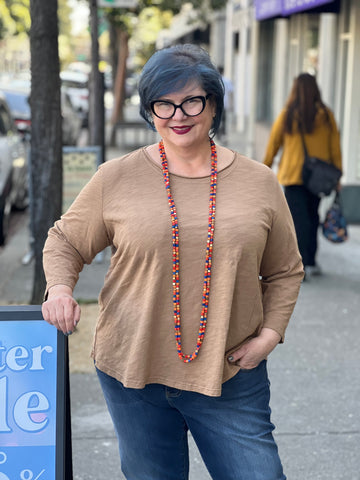 Kleen 3/4 Sleeve Mandarin Linen Shirt-Caramel