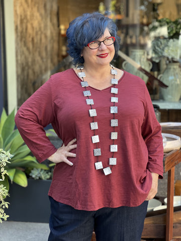 Kleen Cotton Knit 3/4 Sleeve Cardigan-Sangria