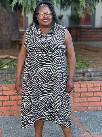 Niche Twin Button Sleeveless Dress-Blue Leaf