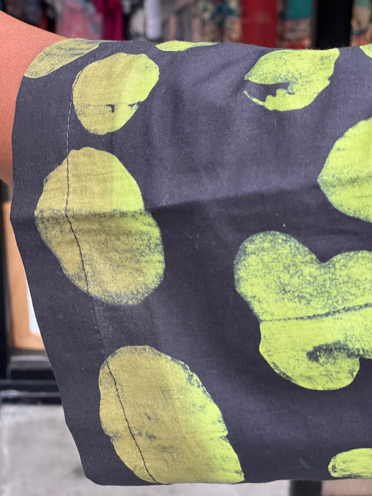 Stand out in this fun, stylish lightweight A-line batik cotton shirt featuring a short mandarin collar that forms a v-neck. 3/4 Sleeves, two side pockets, and a high-low hemline with side vents complete the relaxed, comfortable fit. It may be worn as a shirt or jacket.