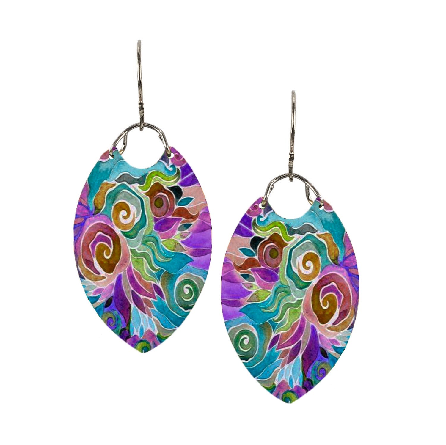 These lightweight earrings are full of color, personality, and style. They are created using a process that permanently fuses the high definition color graphics with the metal surface. The durable enamel-like finish is waterproof and scratch-resistant.