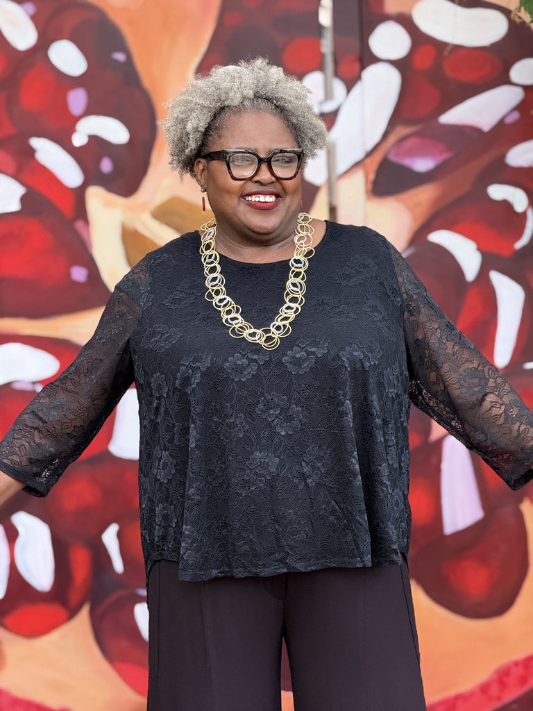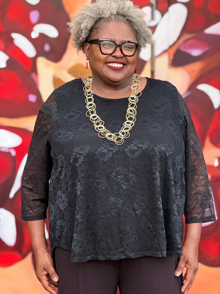 Blue Sky 3/4 Sleeve Ellen Top-Black Lace