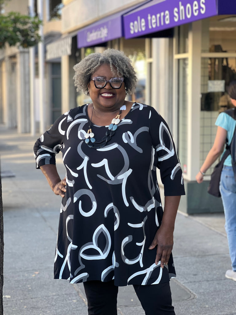 Blue Sky 3/4 Sleeve Spirit Tunic/Dress-BW Focus