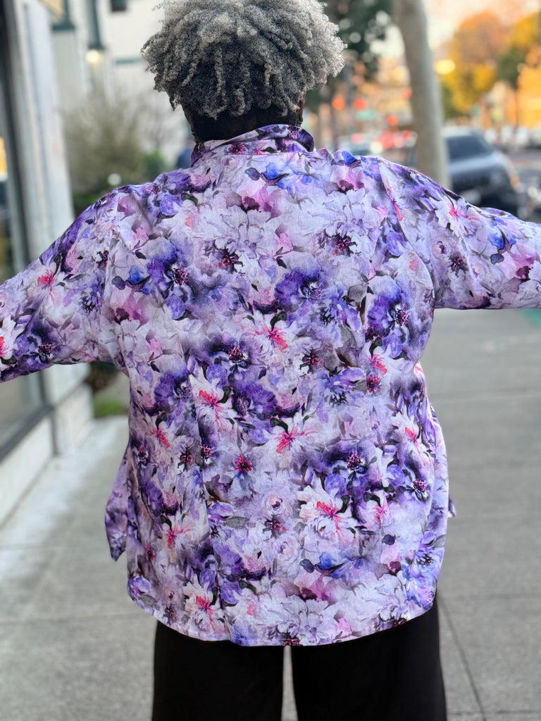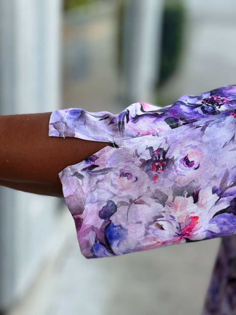 A tailored blouse in cool, breathable Bamboo/Linen fabric. The Lorine features a small collar and princess seams that make it appropriate for the office, or a dinner out. 3/4 length sleeves are elevated by a small slit at the elbow.