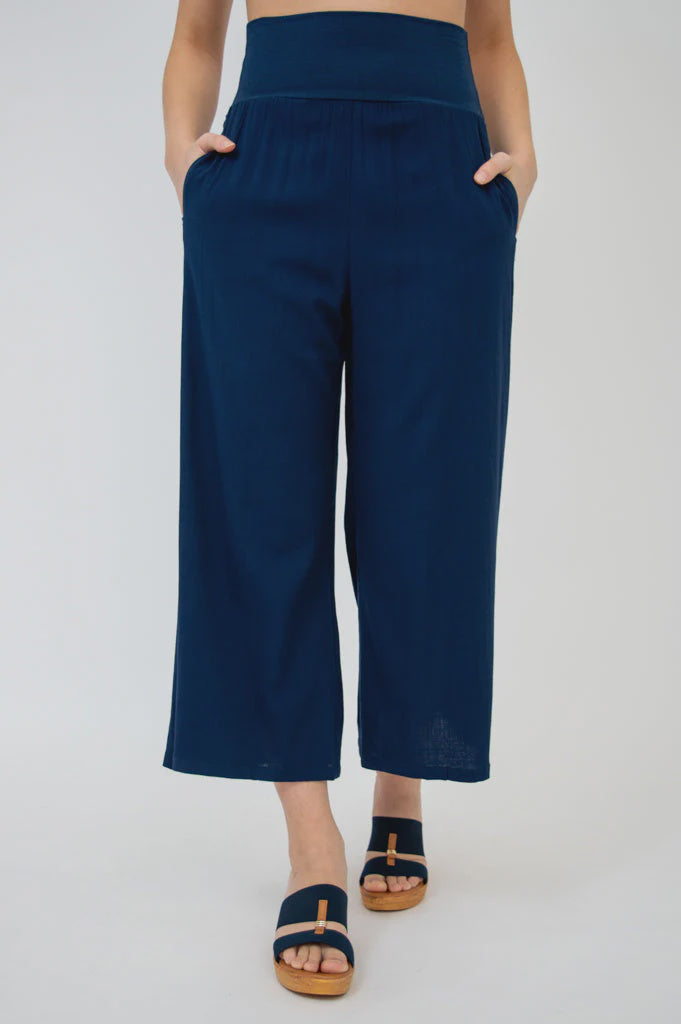 A wide-leg Bamboo/Linen Pant with a beautiful drape. A beautiful texture that instantly upgrades simple summer tops. A wide, flat elastic waistband makes for a comfy fit. Two front side pockets for convenience.