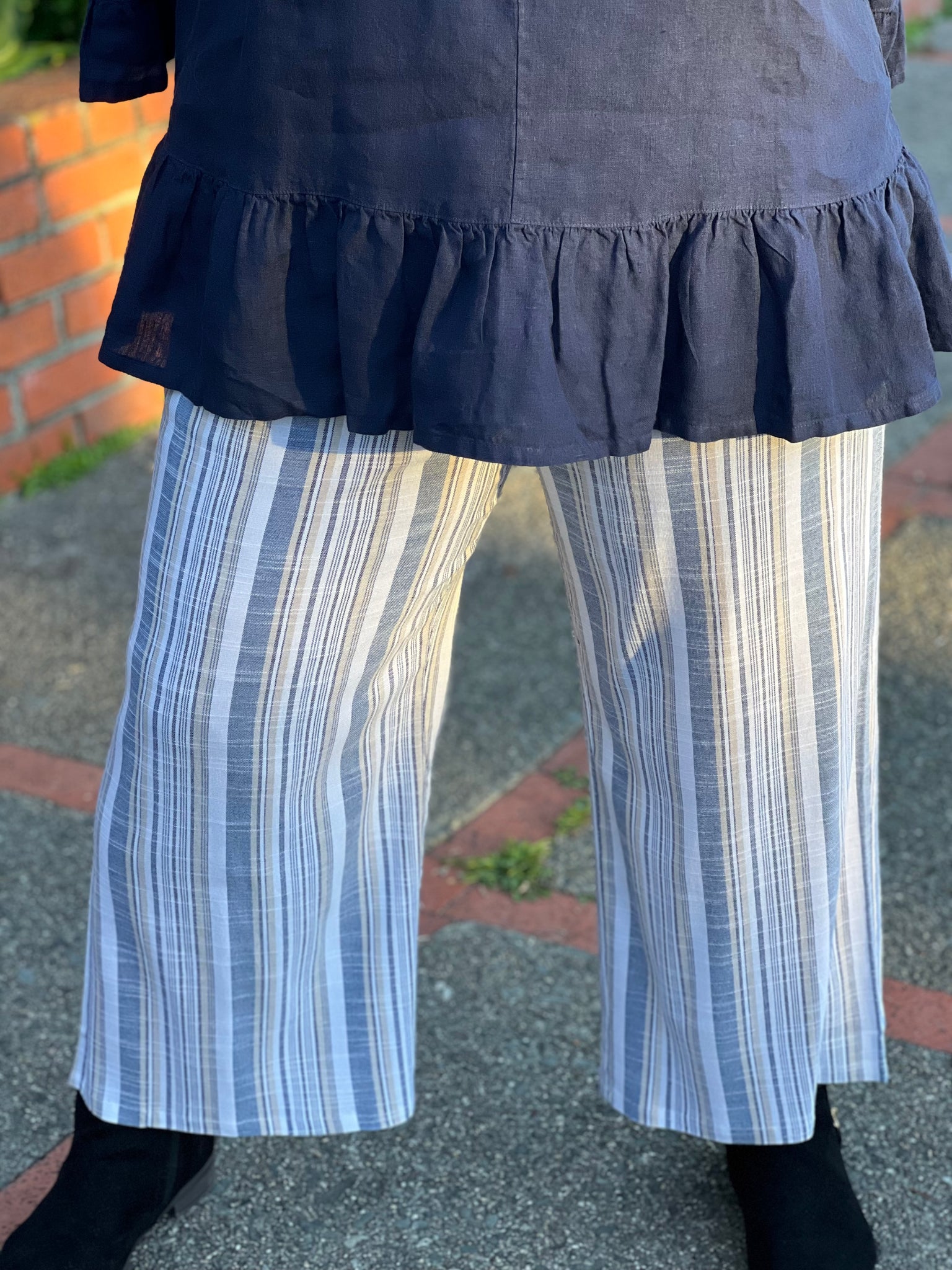 A wide-leg Bamboo/Linen Pant with a beautiful drape. A beautiful texture that instantly upgrades simple summer tops. A wide, flat elastic waistband makes for a comfy fit. Two front side pockets for convenience.