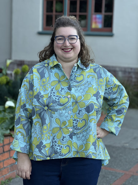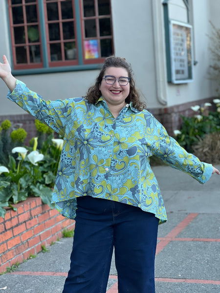 Release your inner Flower Power with this retro print hi-lo top from Bryn Walker. Wear it over jeans or a tank dress to make the perfect Spring outfit.