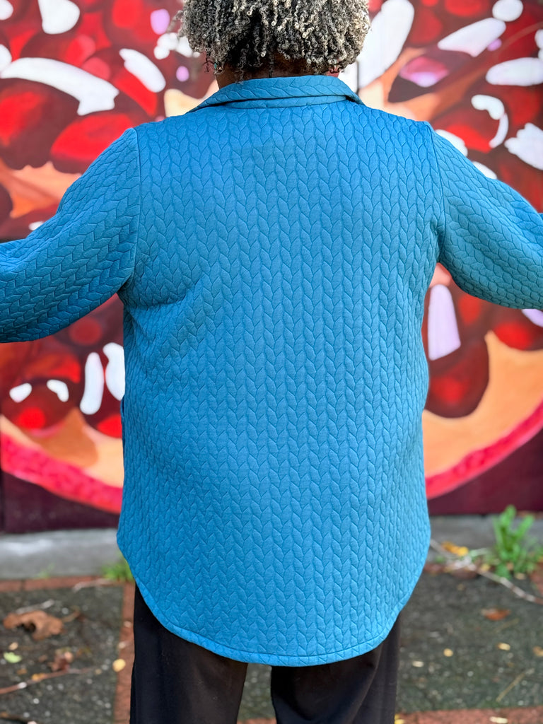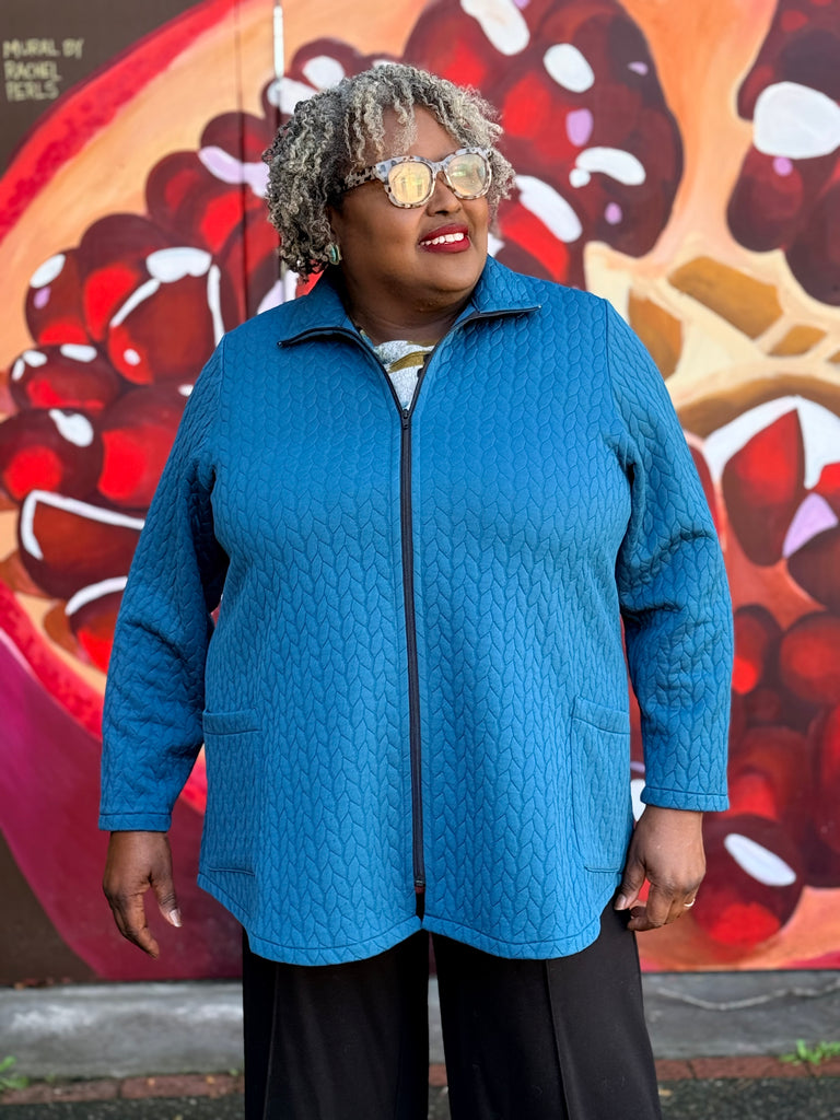 Christopher Calvin Cable Quilt Zip Jacket-Teal