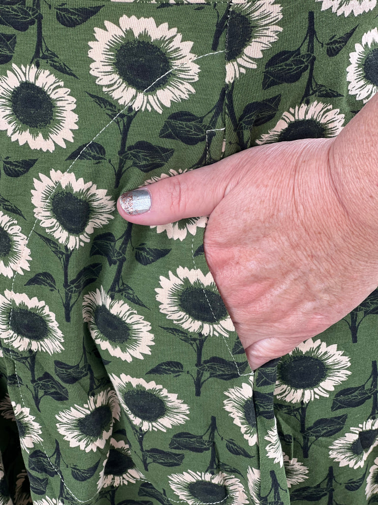 What a beautiful, cap sleeve dress, complete with pockets. This dress is a perfect travel dress. Runs true to size. Shown here with black Sleevy Wonder.