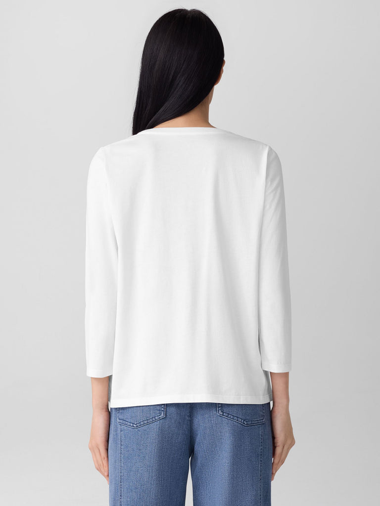Eileen Fisher Pima Cotton 3/4 Sleeve Tee- White