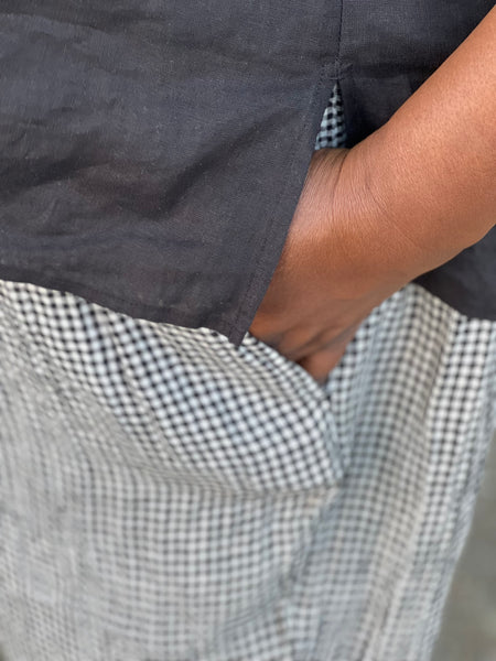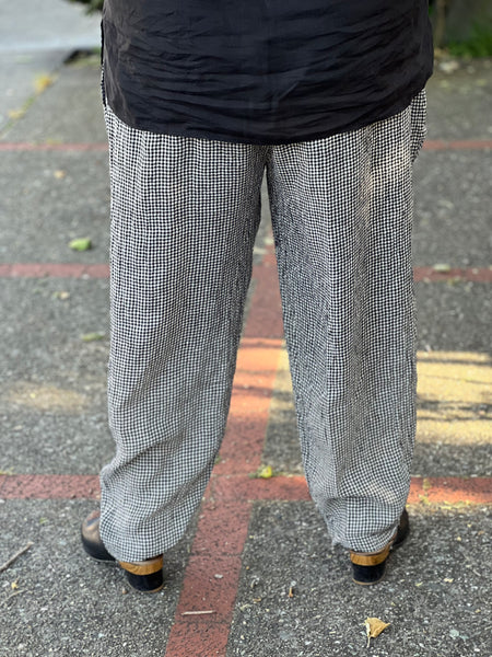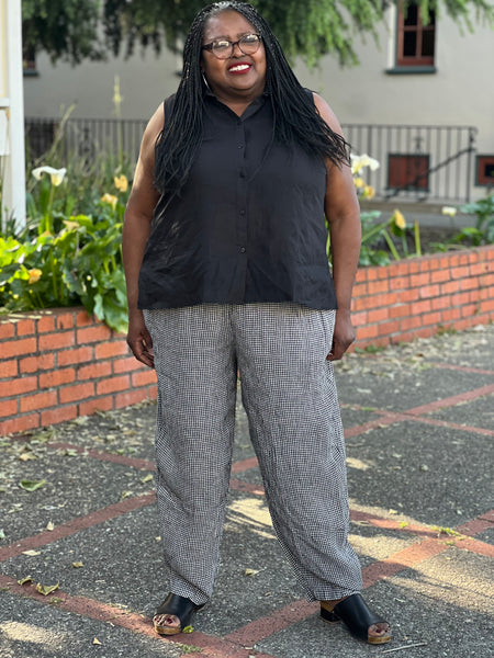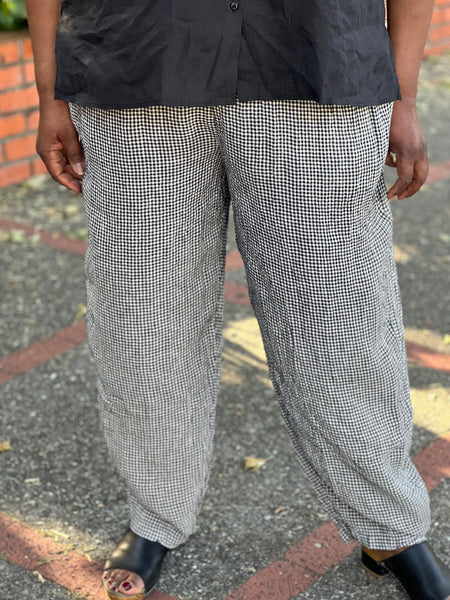 Eileen Fisher Puckered Linen Check Taper Pant-B/W