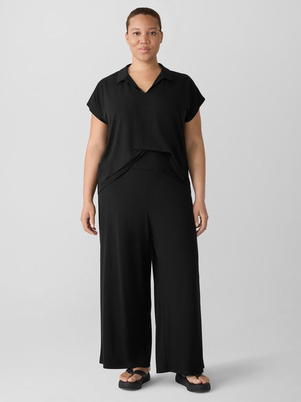 Eileen Fisher Stretch Jersey Knit Wide-Leg Pant-Black
