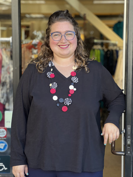 Eileen Fisher V-Neck Long Sleeve Tee-Black
