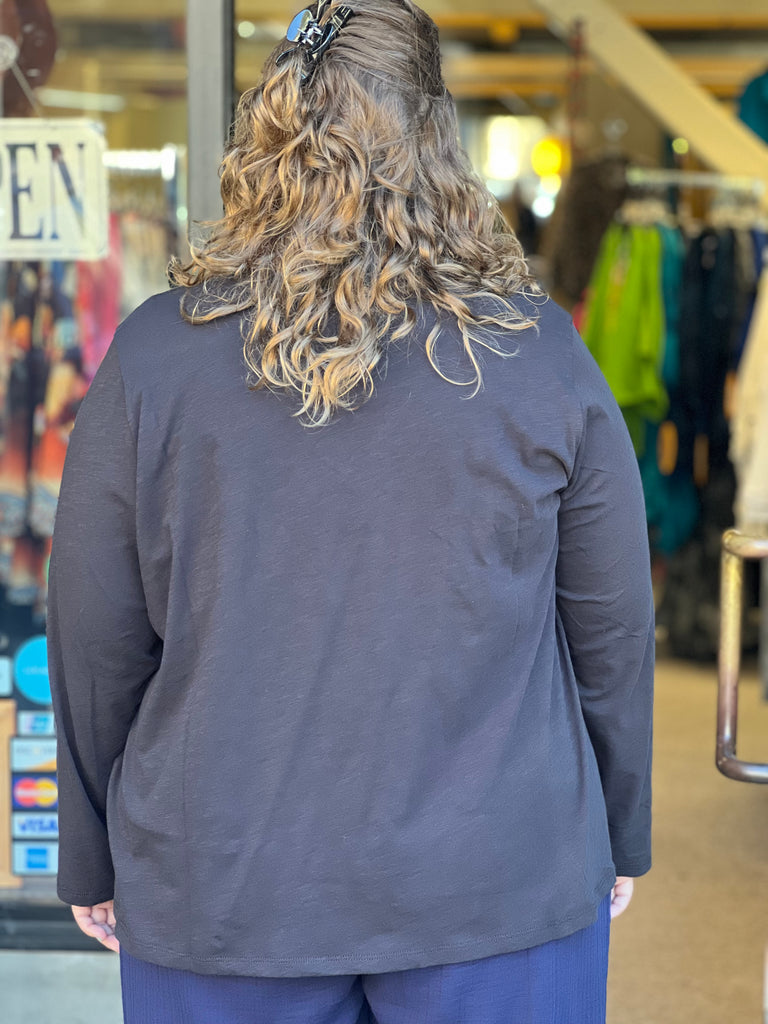 An elevated basic you'll reach for again and again. With a round neck and long sleeves. In organic pima cotton from Peru--wears well, washes beautifully.