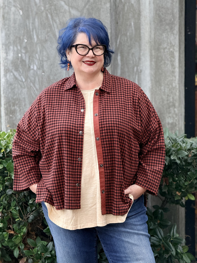 Eleven Stitch Small Check Big Shirt- Ginger Spice