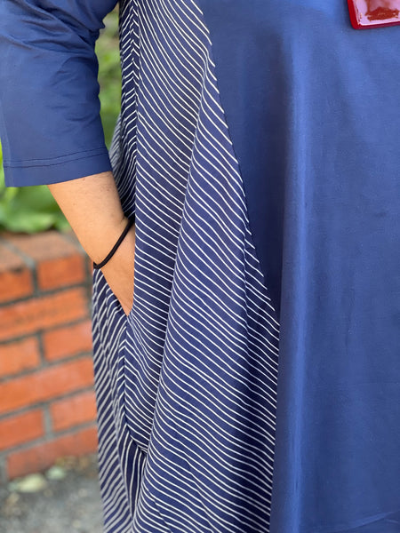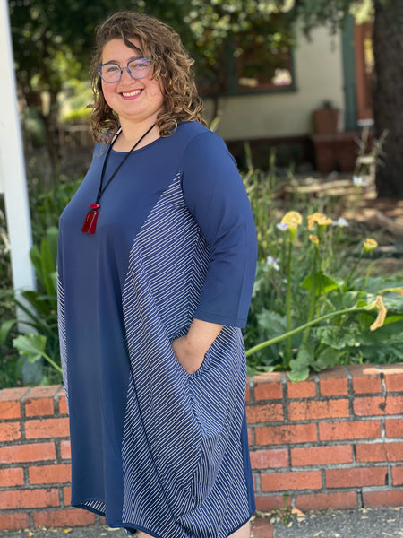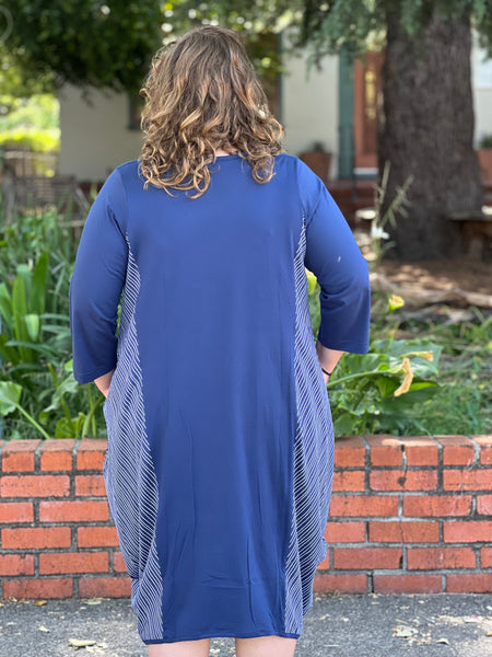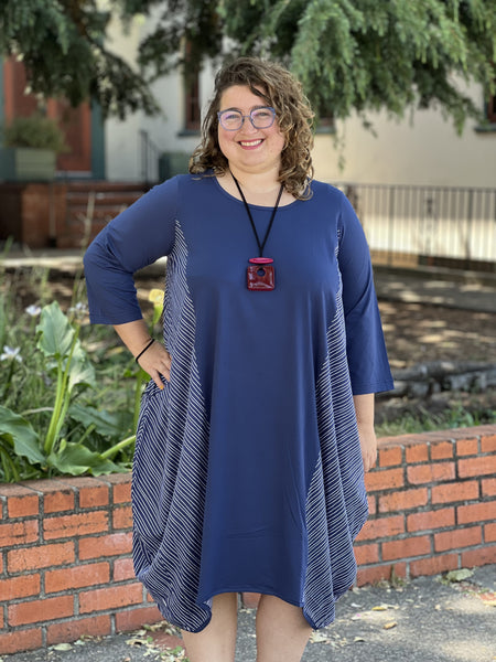 Flutter 3/4 Sleeve Sarah Dress-Navy/White Stripe