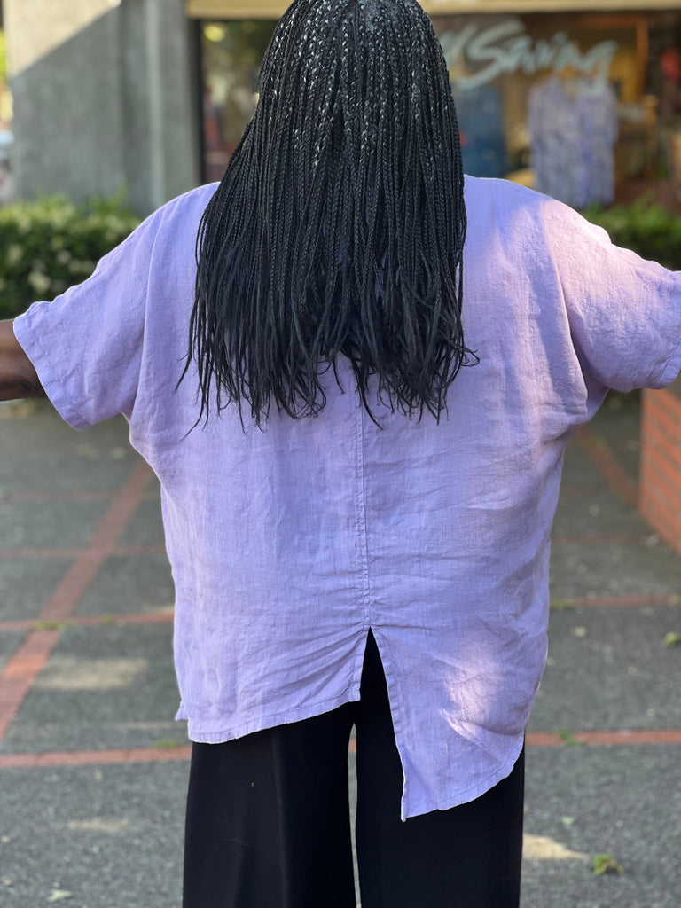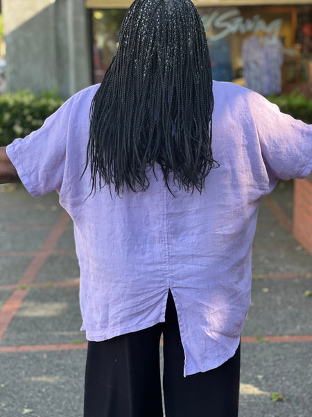 Gerties Linen One Size Asymmetrical Top-Lavender