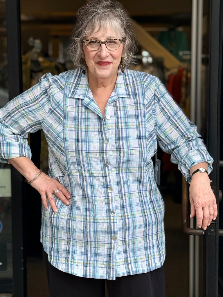 Habitat Blurred Plaid Boyfriend Shirt-Blue Sky