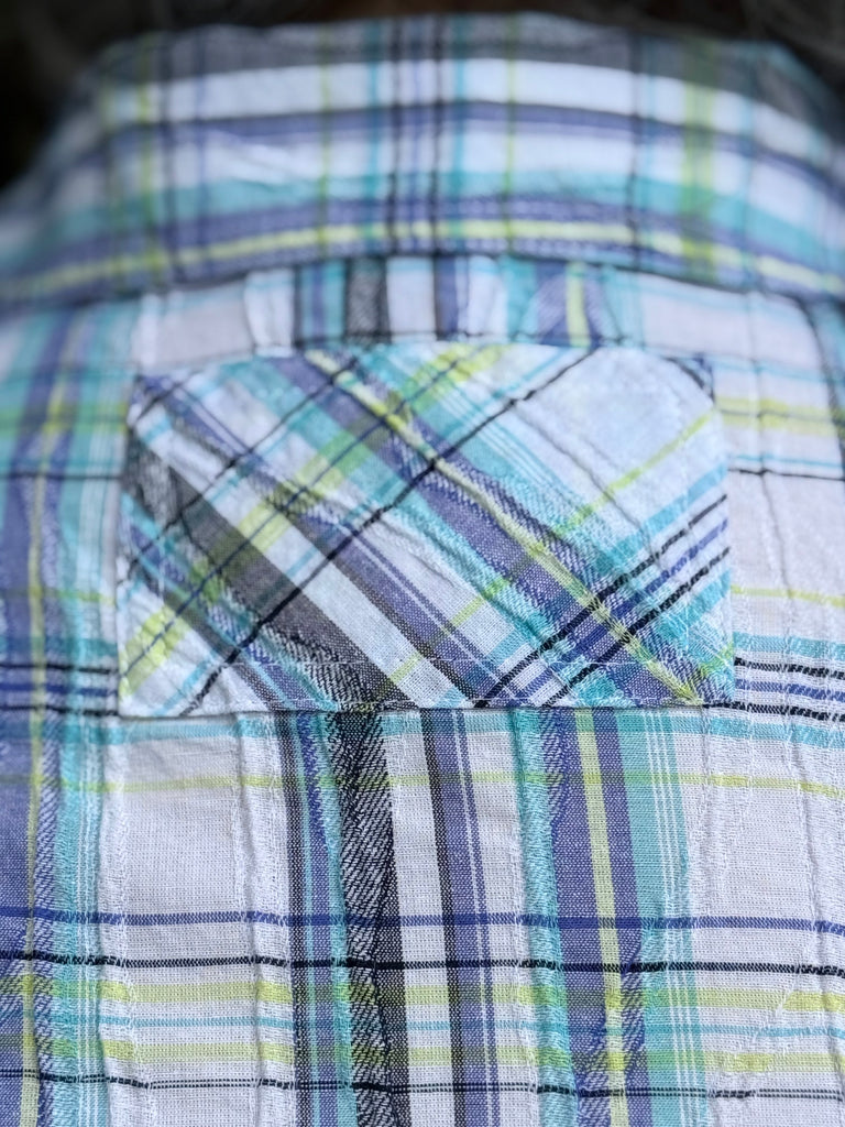 - Subtle plaid pattern adds texture and visual interest