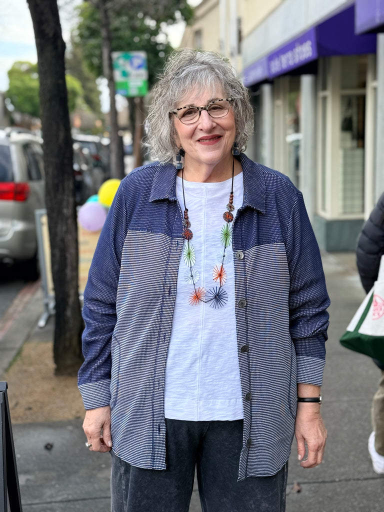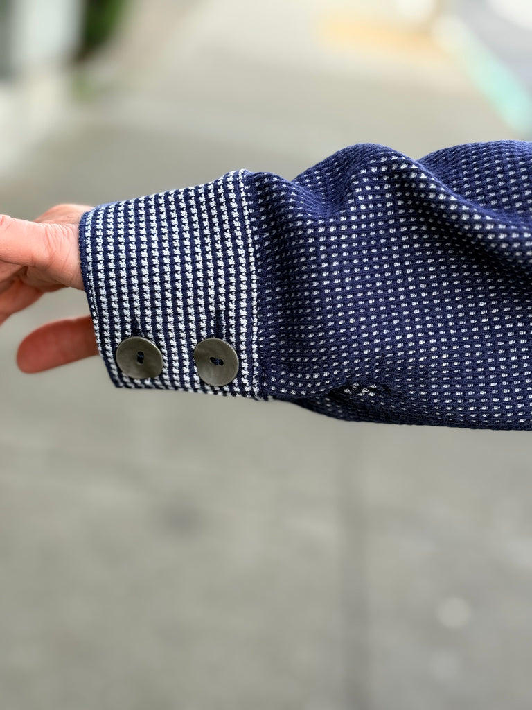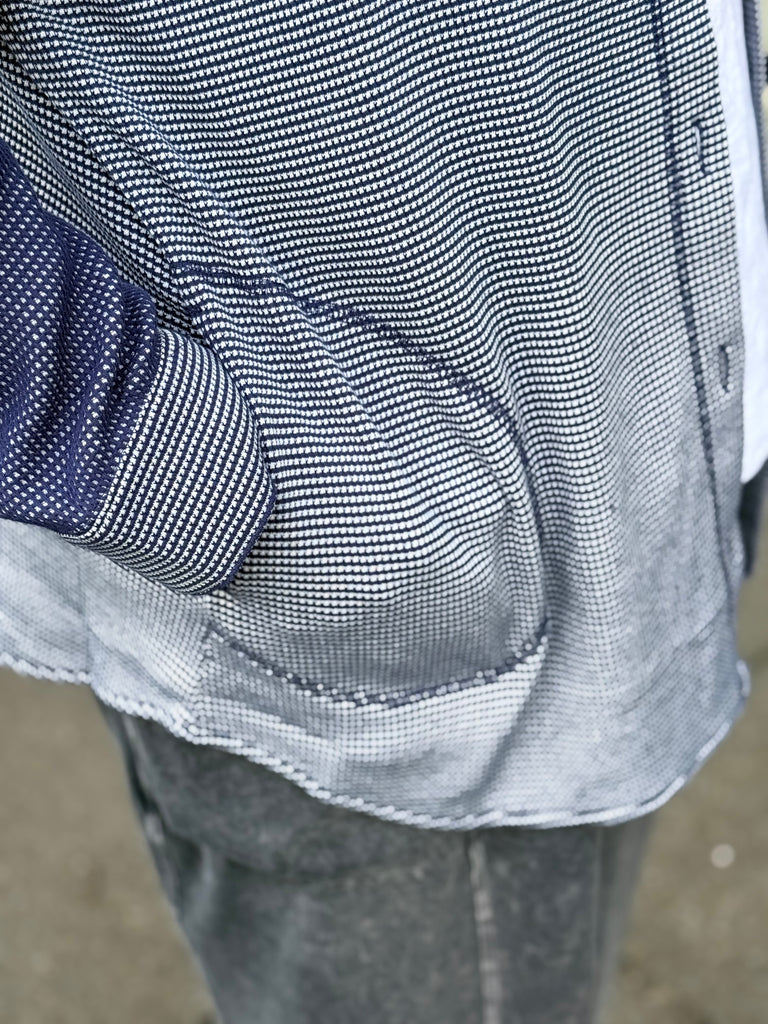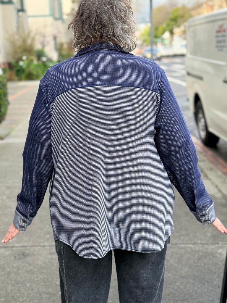This Shirt-jack mixes both sides of cotton micro thermal to create a fun new style. Contrast cover stitching and opposite side yoke and sleeves. All important pockets!