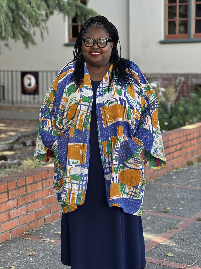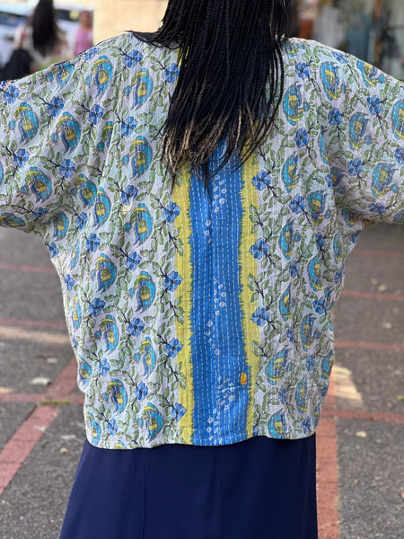 The Gaia Kimono is made from vintage kantha fabrics. Crafted and sewn by families in a small village in Northern India providing work and a fair living.