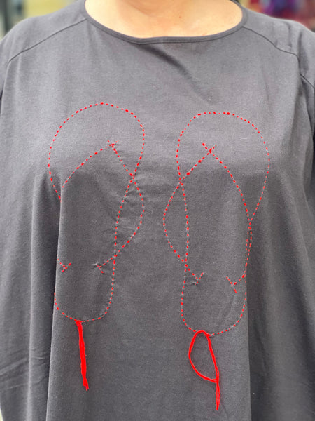 Expertly crafted for comfort and style, the Regal shirt boasts an oversized silhouette with intricate summer sandal embroidery. Designed to make a statement, this piece allows the body to breathe and the spirit to shine, making it a must-have addition to any wardrobe.