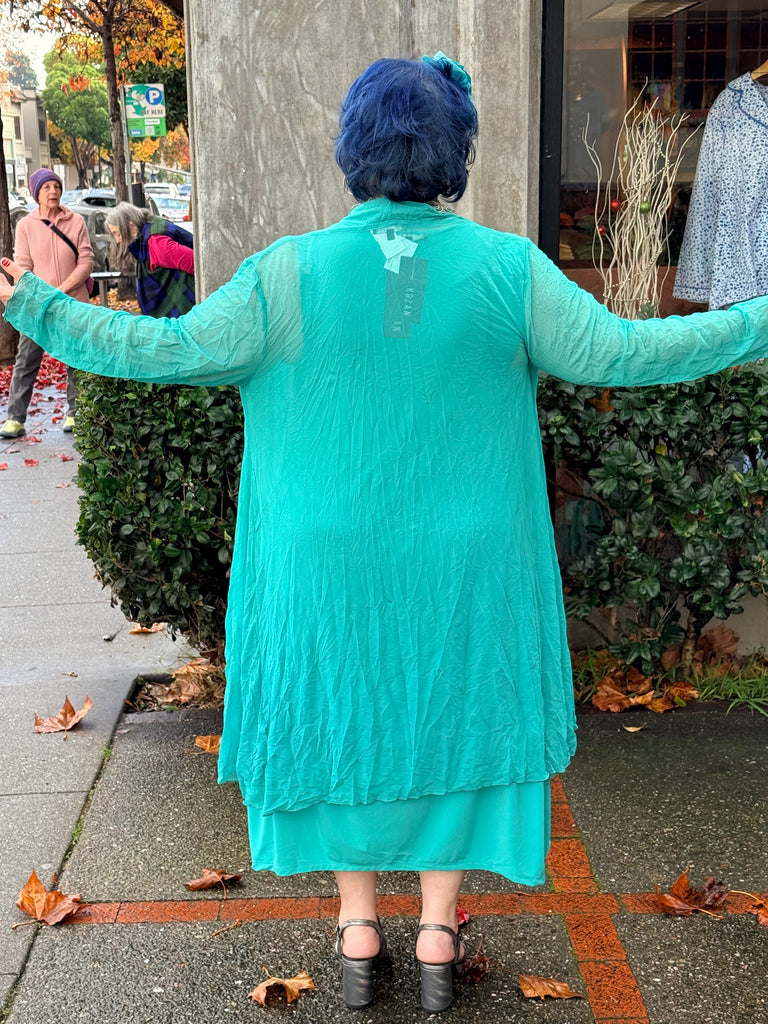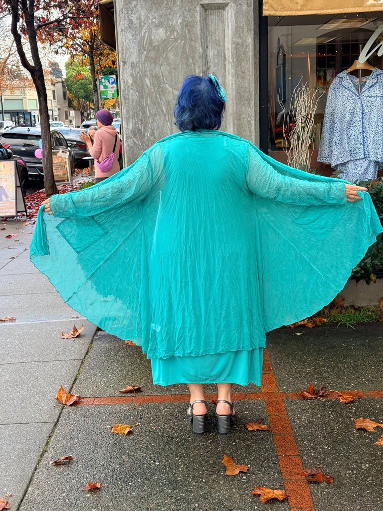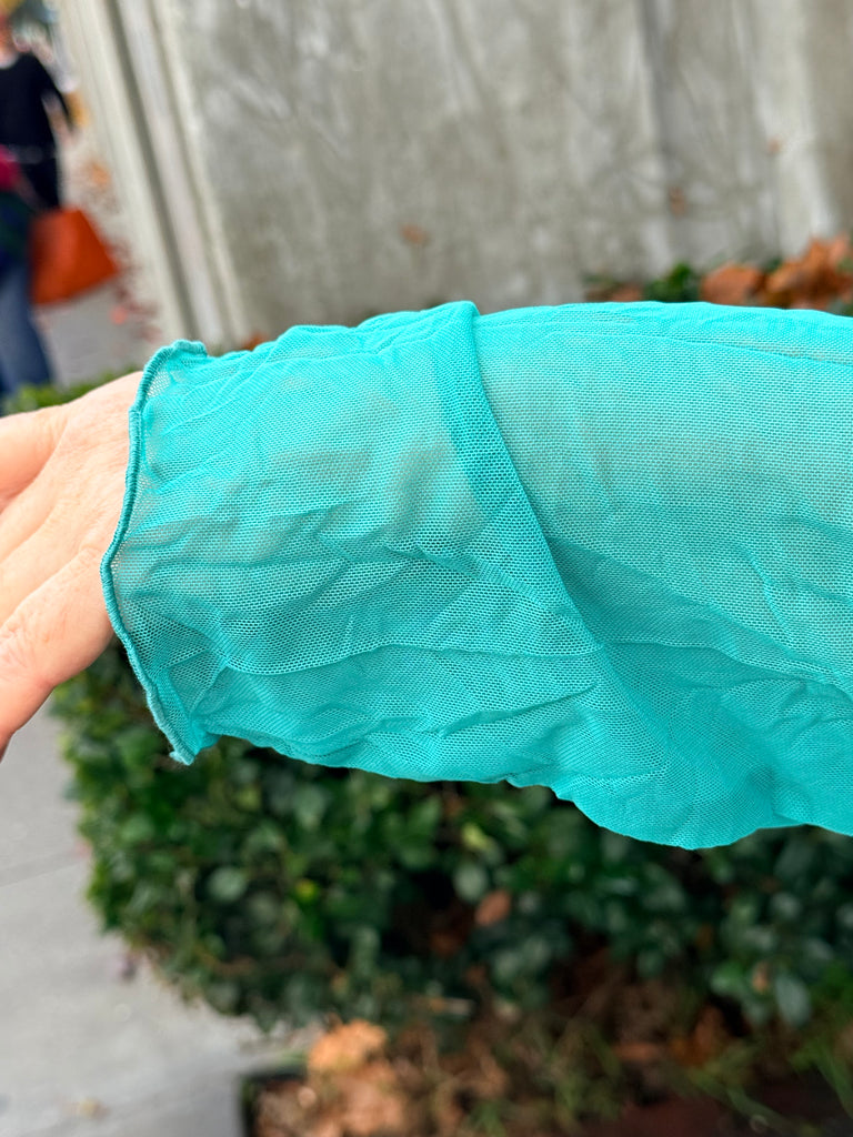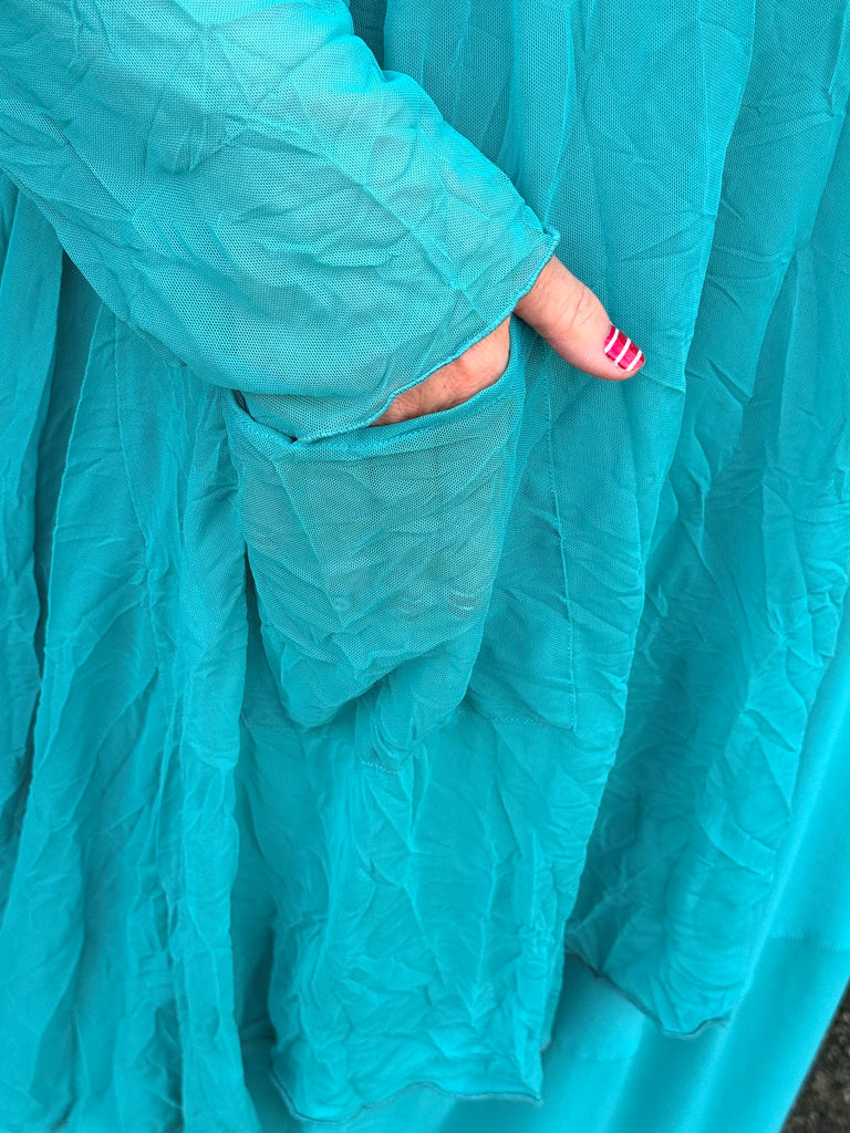 Drape in some dreamy goodness with this lightweight jacket fashioned in sheer mesh fabric in a longline silhouette. Featuring front pouch pockets, inserted extra fabric for extra float on the sides and long sleeves. A sophisticated option that works as an effortlessly light layer over any outfit.