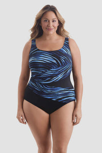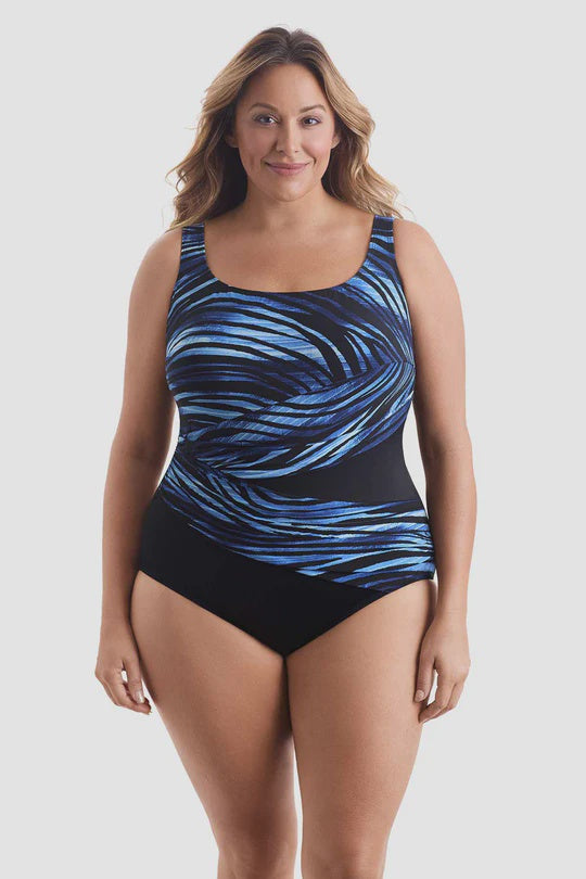 Inner firming shapewear in each Longitude swimsuit offers all day comfort while colorful prints and signature solid black styles grace this ageless swimwear. A longer length and finer fit enhance all figures, embracing confidence within.