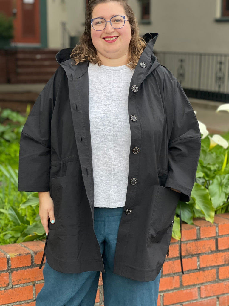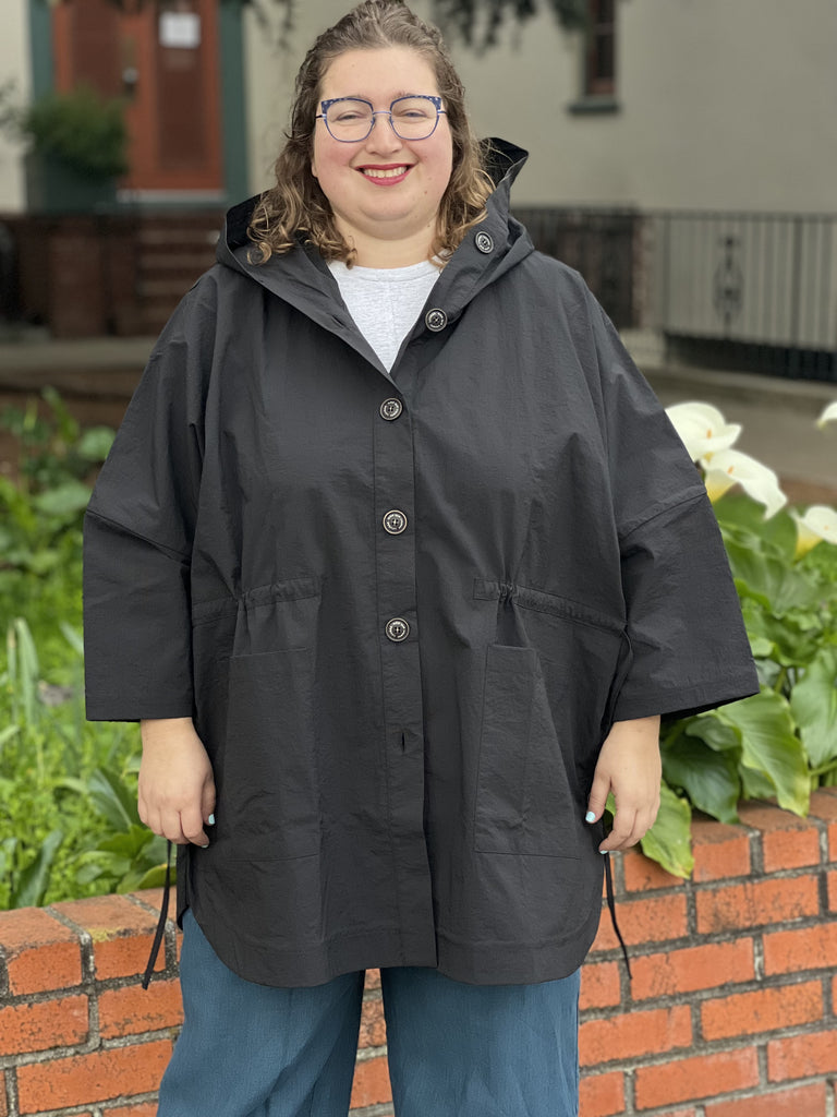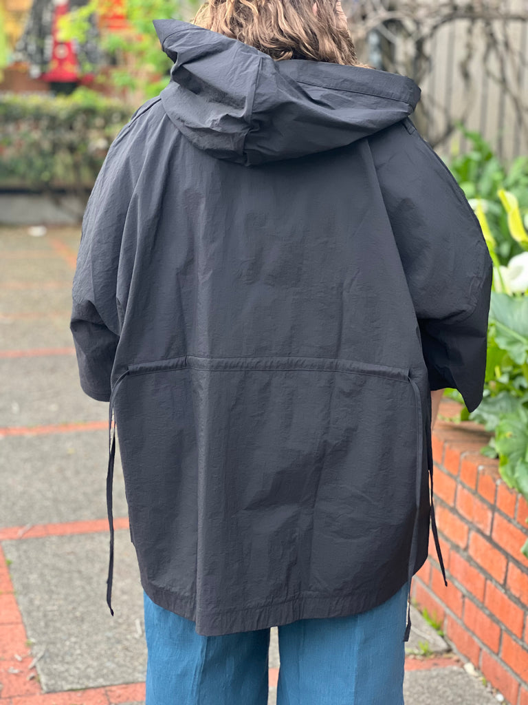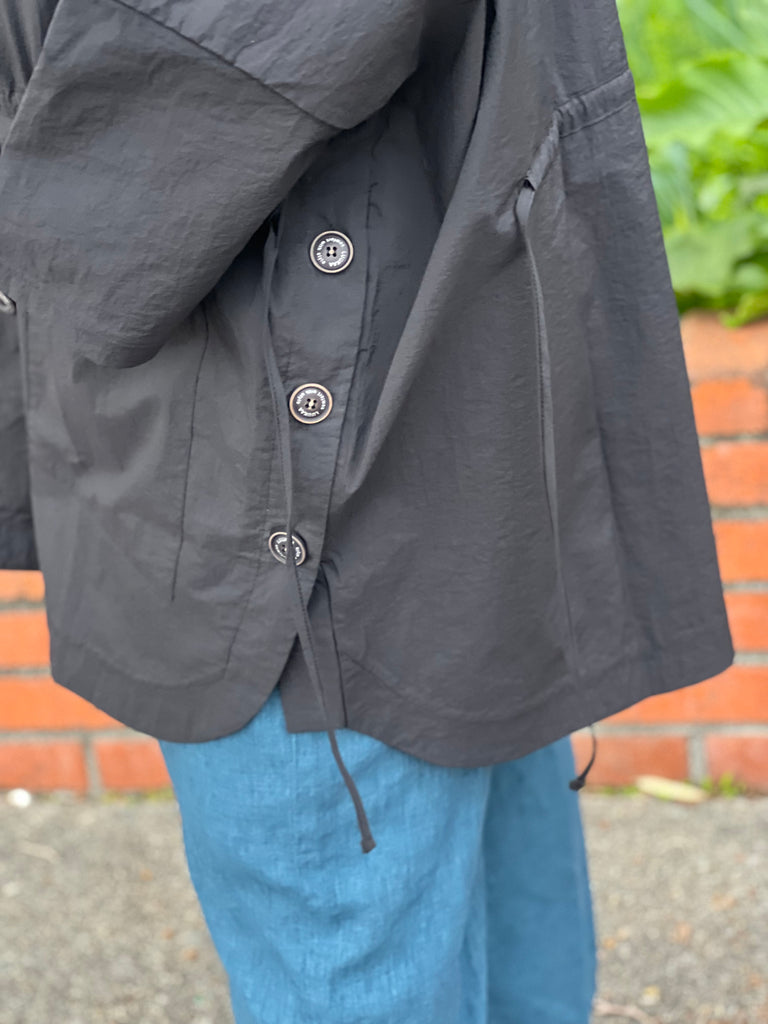 The Luuka Doodle jacket features a relaxed silhouette with a cinched waist for adjustable styling flattering fit. The jacket is crafted from lightweight polymide providing a structured yet breathable feel. The oversized hood gives this unique, contemporary edge, while functional button accents at the sides offer additional styling options.