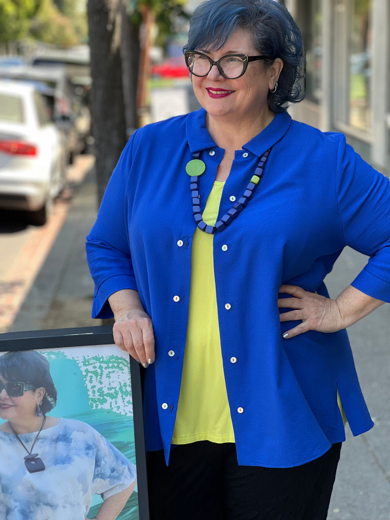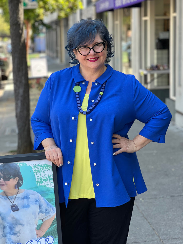 A slightly longer version of Niche's bestselling Twinbutton Blouse. Double sets of shell buttons down the front, easy a-line shape and straight hem. Sleeves are 3/4 sleeve with open cuff. Inverted pleat and open notched collar in back.