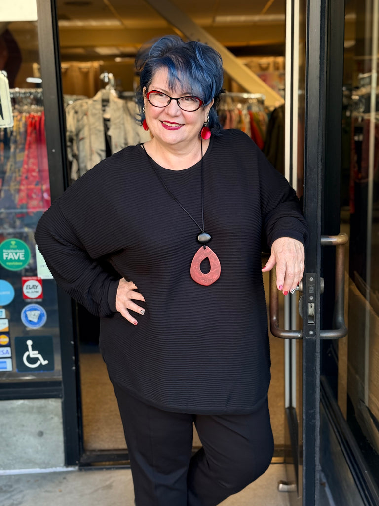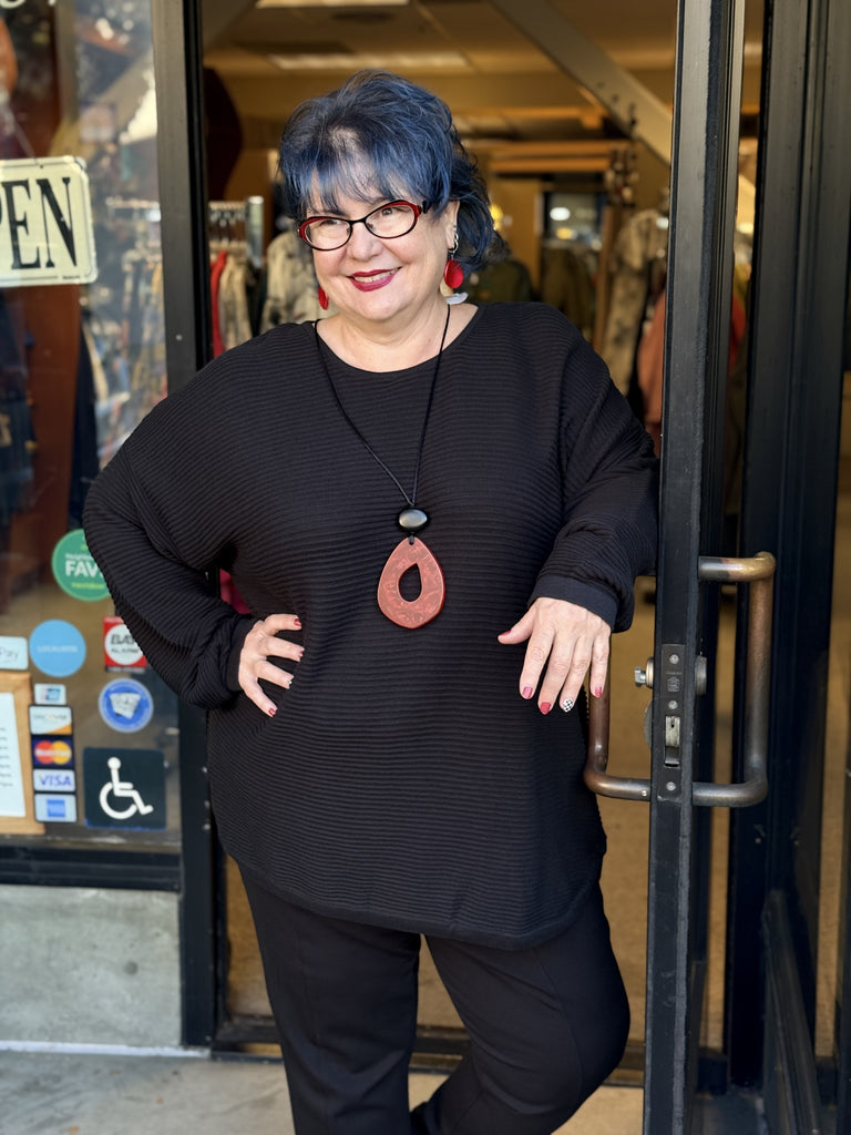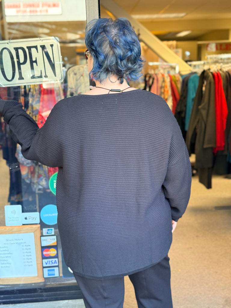 Orientique Organic Cotton Rib Knit Sweater- Black