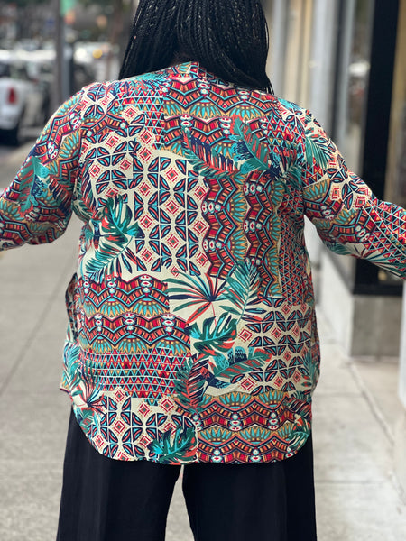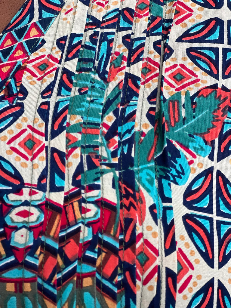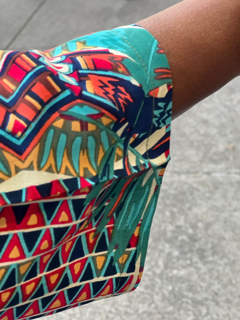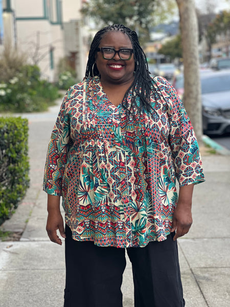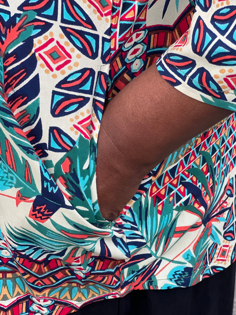 Step into summer in this colourful Rio top. Featuring a flattering v-neckline, delicate pleats at the bust, and practical 3/4 sleeves, this piece promises both comfort and elegance. This is the perfect piece for sunny, seaside days.