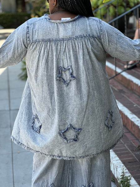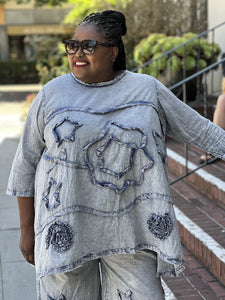 Paper Lace One Size Top with Star Applique- Grey