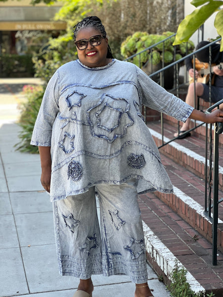 Paper Lace Blue Gray Abstract Star Top is a must-have for spring! With its scoop neck and star detail, it combines style and comfort. Made of super soft material, it's perfect for any occasion.