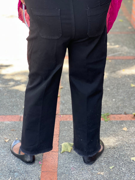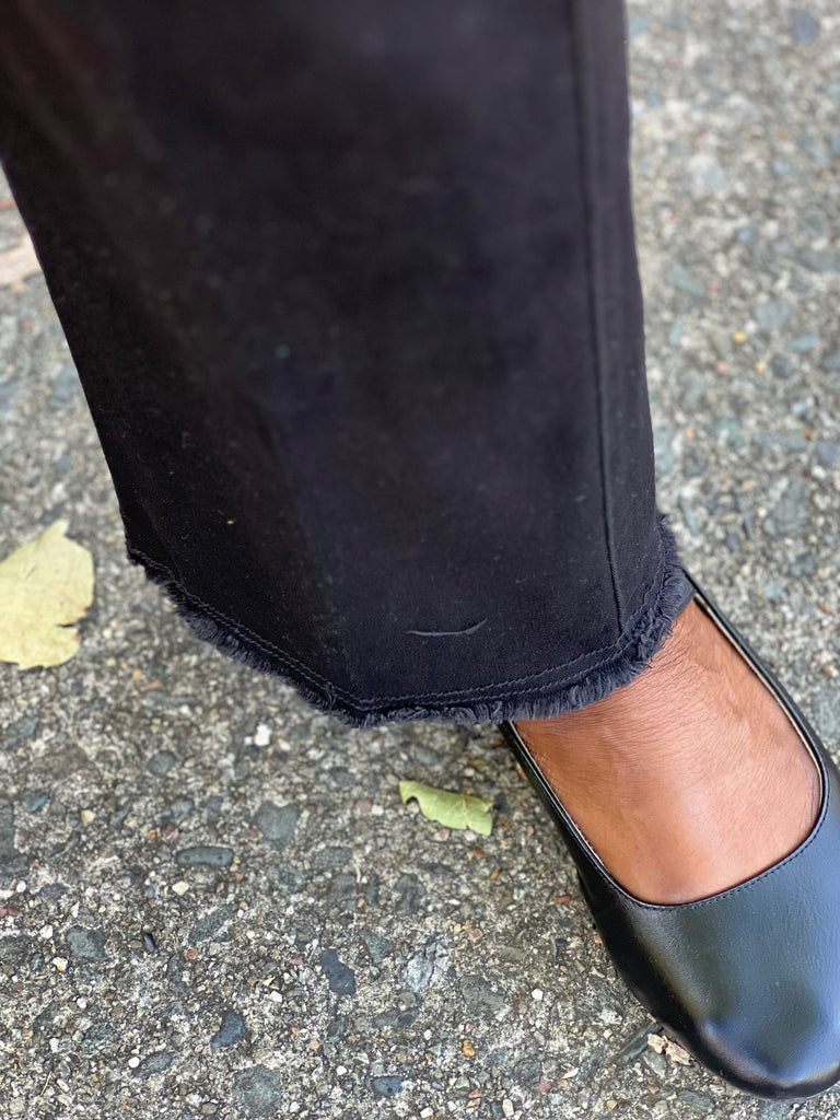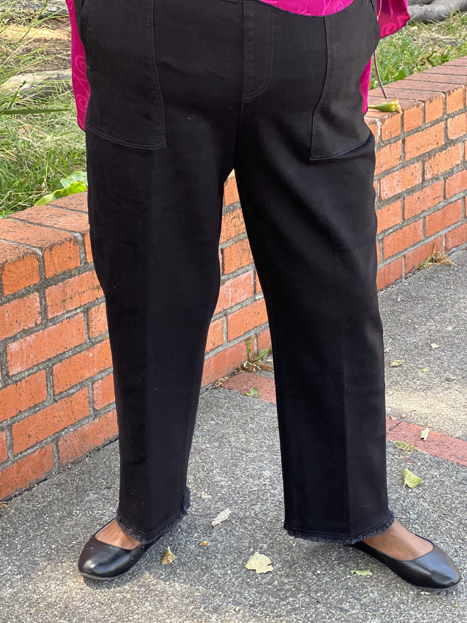 Slimsation P/O Elastic Waist 4-Pocket Fringe Hem Jean-Black