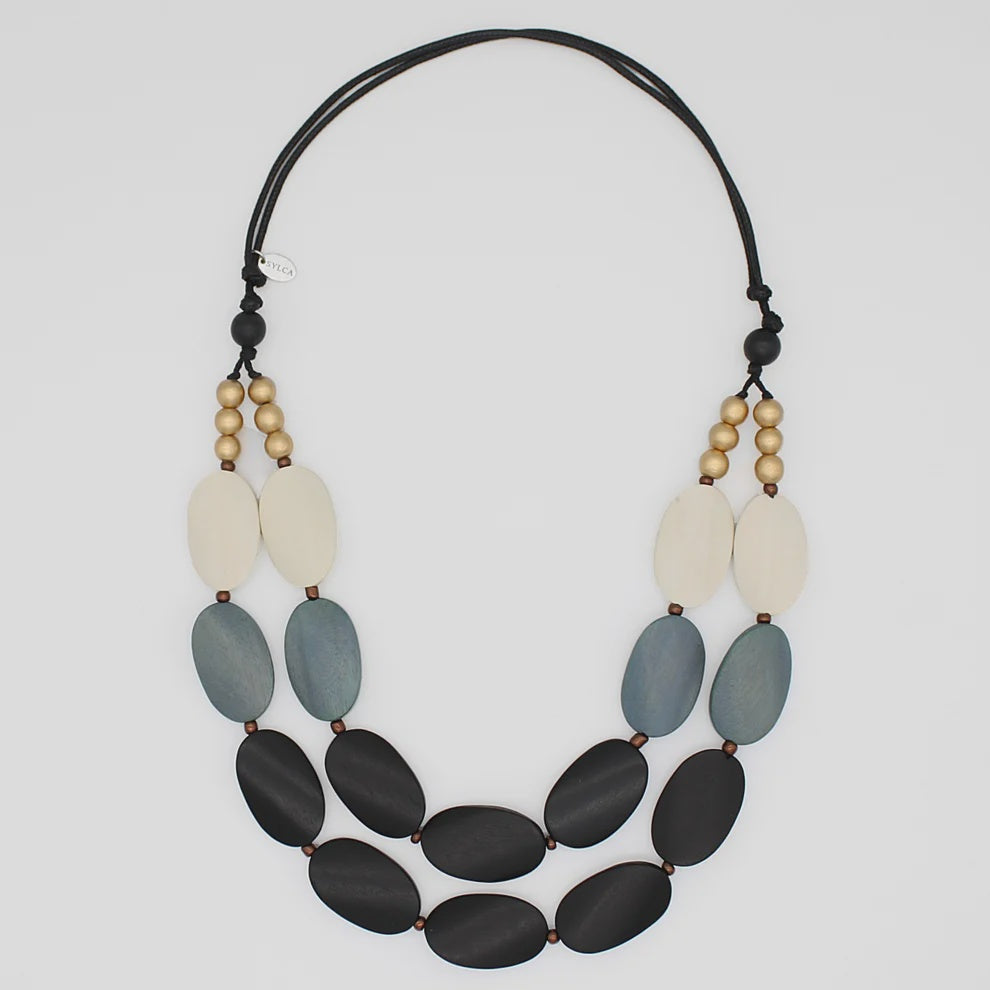 Indulge in the awe-inspiring artistry of our Handcrafted Gracie necklace. A double strand of wood beads in a monochromatic colorway ensures that this necklace stands out from the crowd. Carefully handcrafted using an adjustable black wax cord, it exudes a sense of natural beauty and effortless style while showcasing Sylca's commitment to lightweight comfort and exceptional craftsmanship.